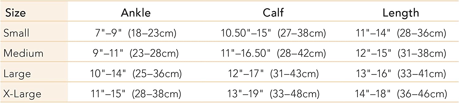 For accurate sizing, two measurements are required. First, measure the circumference of your ankle at its narrowest point, just above the ankle bone. Second, measure the length of your calf from the floor near your heel up to the back of the knee. Use both measurements together to determine your correct size.